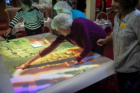 The trust approached experts in motion-activated interactive technology, OM Interactive, to provide an interactive projection solution that would be portable and flexible in terms of usage. It needed to be able to be used in multiple rooms, some of which are very bright and airy, and also adaptive to residents’ limitations in mobility.